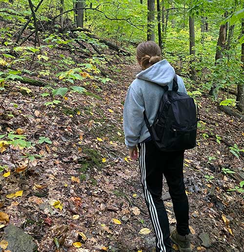 There was a little less bird activity than there was before. It was a very steep scent to get to the spot. On the way up Taylir lost the dead cat so I was a little mad at her. She came back while I was recording my previous oak recording and fortunately she found it. Taylir’s bird app wasn't working when the bird was there so we were unable to identify it. There are distant sirens in the background. There were also 2 little chipmunks playing with each other near Taylir. I put the recorder in a chipmunk hole and was afraid that a chipmunk might pop out.