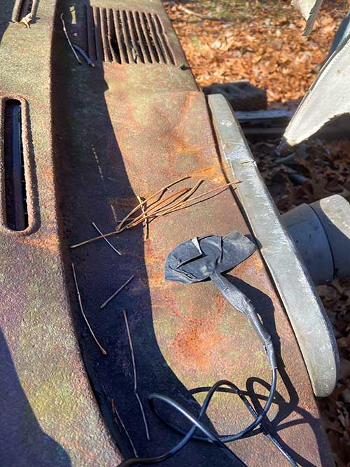 Contact sticks on rusty rashboard anthill car 11-9-22
