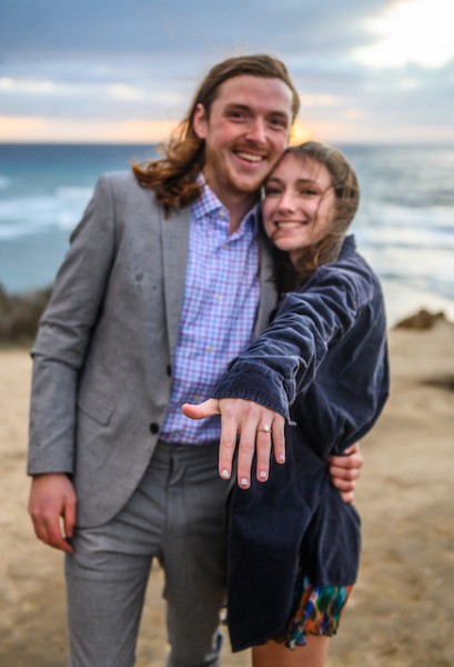 Tara and I met on move-in day in 2017 and we bonded over baseball during those awkward floor icebreakers in Hughes Hall in Hinman. Tara often came to our suite to hang out, and after a year we became very close. Between freshman and sophomore year, all of our friends were going to go to a Mets game together, but everyone dropped out besides me and Tara. We still went and since then became best friends. The next semester we hung out almost every day, playing catch in the quad, eating in the old dining hall and going to Tom and Marty’s. I made the hard decision to study abroad in the spring, while she graduated a year early, leaving us with many questions about our future together at the end of the fall semester in 2018. While we were apart, we Facetimed and sent letters as frequently as possible, and shared our first “I love you” from countries away. When I returned, she was waiting at the airport for me and we began dating that week. She is finishing law school at Syracuse and I moved to Tucson after graduation in 2021 to work. While she was out here visiting me, we took a road trip to San Diego and got engaged at Sunset Cliffs on New Year’s Eve 2021.
