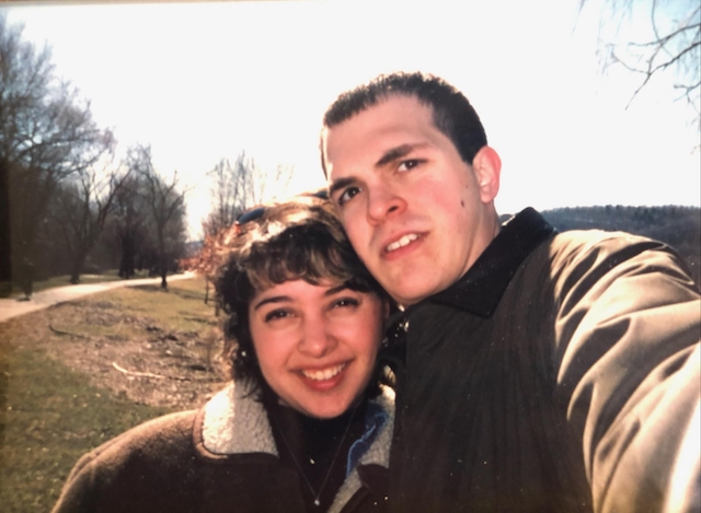 Three months before I was scheduled to leave Binghamton I found myself drawn to the new transfer student. I would see him weekly in the Computer Center looking studious and focused. Not once did he look my way, and that intrigued me. Although we had several friends in common, we never had the opportunity to meet, and I didn’t have the courage to introduce myself. As the weeks passed and I was getting closer to leaving, I promised myself that I would find the courage to introduce myself the very next time I saw him. That time would come at a friend’s birthday party. When I saw him enter the apartment I took a deep breath and introduced myself, something I had never done before. To my surprise, he said that he already knew who I was. We chatted for a bit and I left the party early without exchanging numbers. For three days, I couldn’t stop thinking about him, so I called a friend, who called her boyfriend, who called his friend to get his number for me. The night I called him, it turned out to be his 19th birthday. He was pleasantly surprised and we talked for two hours that night. The next night he called me and we spoke for several hours again. For the next two months we got to know each other and embarked on a relationship that lasted seven years. After a two-year breakup, we got back together and have now been married for almost 17 years with two children.