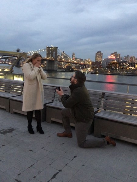 Connor and I met downtown. He had recognized me after seeing my name in a Pipe Dream article and searching for me on Facebook. I didn’t find out that part until two years into dating! We hit it off right away and started dating on Feb. 26, 2014. We have since moved around the NYC area together with our two dogs, Doc and Holland. On Feb. 26, 2021, our seven-year anniversary, Connor proposed! We can’t wait to get married with so many of our Binghamton University friends by our side.