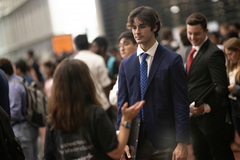 Breathe, be calm and remember that some of these recruiters may be just as nervous as you. We’re all human, and they understand that you are a student looking for opportunities, and that’s naturally a vulnerable and stressful event. It gets easier the more you do it, and you can practice for this with the Fleishman Career Center and by using Big Interview. Come with an explanation of your career path and experience, as well as questions.