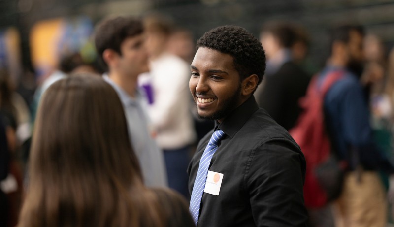 Make sure you bring your student ID, proper work attire, a folder of resumes, pen, personal list of companies, breath mints, map of the fair, and your phone, as sometimes the booths let you apply through QR codes. Also, make sure your hireBING account has the correct name, major and class year, as you will check in and receive a nametag with your information. Bring your confidence and peaceful mindset. Don’t forget to check out the Fleishman Center’s guide for more details and tips!