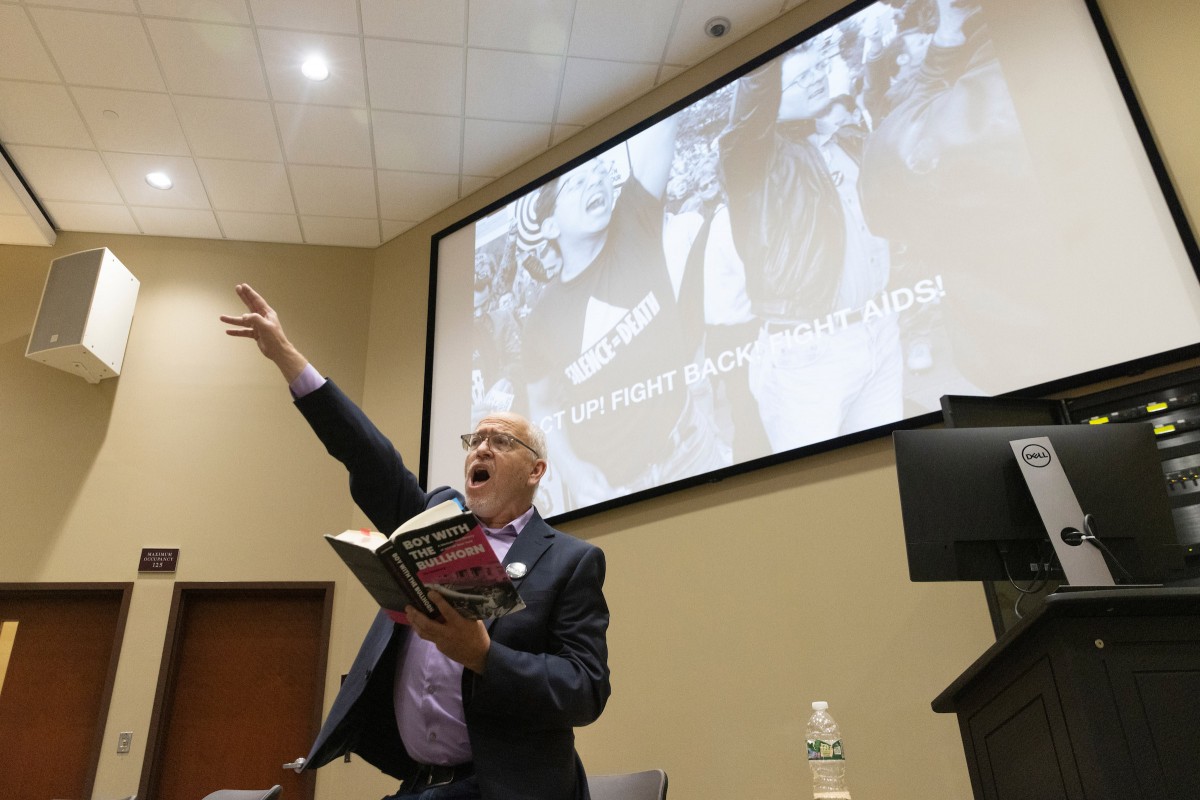Goldberg returned to his alma mater Oct. 24 to do a reading from his new book Boy with a Bullhorn: A Memoir and History of ACT UP New York, followed by a conversation with Professor of Sociology Benita Roth, author of The Life and Death of ACT UP/LA. The event was sponsored by Women, Gender and Sexuality Studies, the Theatre Department, the History Department, the Q Center, the Binghamton University Alumni Association and the Southern Tier AIDS Program.