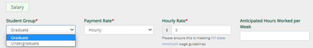 - Please ensure the students hourly rate is meeting NY state minimum wage guidelines.