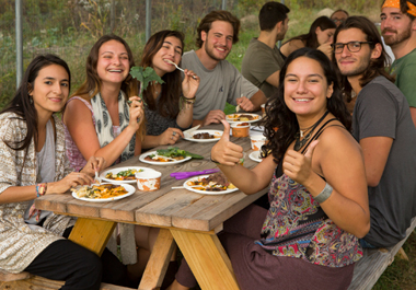 The BU Acres Farm, located right on campus, promotes sustainability through locally grown produce. During the harvest festival students and faculty pick crops — yellow squash, kale, pears and apples — and prepare a feast!