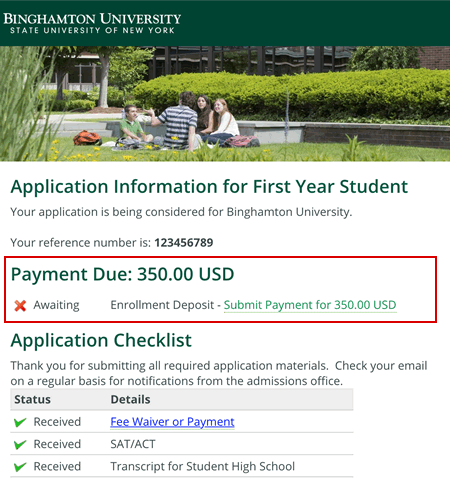 By paying an enrollment deposit, you acknowledge and accept our offer of admission and you plan to attend Binghamton University.