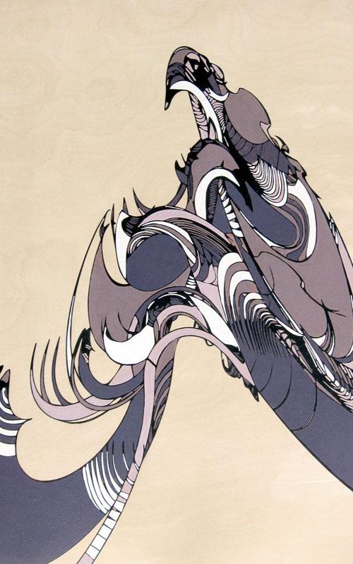 Artist's Statement: Throughout her life, my maternal grandmother Kimiye Ebisu studied and taught Shodo, the art of Japanese calligraphy. I remember hearing from my mother about how Kimiye would sit at the kitchen table late into the night, writing a single Kanji character, then crumpling it up and repeating this process for hours until the result was to her satisfaction. This lesson brought an appreciation for the artistic labor involved in gestural mark-making. As an undergraduate student at SUNY Binghamton, I studied painting under Angelo Ippolito, a New York School Abstract Expressionist painter. Ippolito opened my eyes to abstraction through the simple explanation that his work was "about paint". It wasn't until I began to experiment with technology in my practice that I personally began to explore ideas of abstraction and the importance of gesture. Working digitally, for me, taps into the subconscious impulse in a manner similar to the ways in which Surrealists used wordplay and automatic drawing. I have come to feel that it would be irresponsible of me as an artist not to embrace the tools of our time, namely, the computer. Recently my imagery has begun to tread the line between abstraction and figuration, but I have chosen neither label for my work. In my opinion, whether a picture is considered figurative or abstract, it is successful when it remains mysterious. |