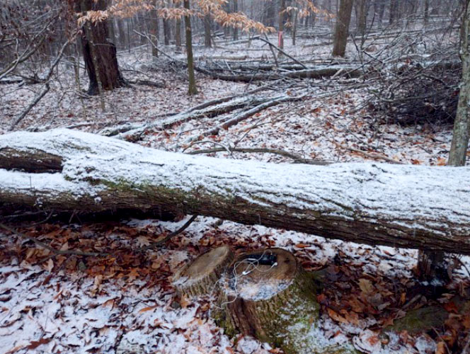 a different perspective, I placed the stereo mic under a fallen tree and just let