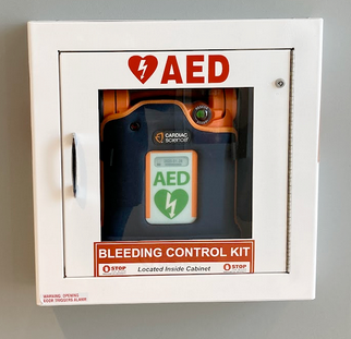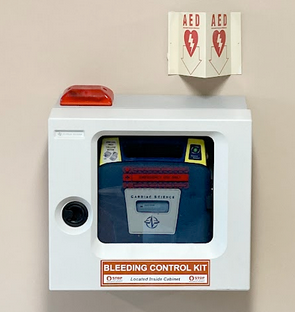 Across Binghamton University properties are Life Safety Cabinets, each containing equipment meant to aid the public during medical emergencies. Every cabinet is stocked with supplies to aid in specific events: for cardiac emergencies, Automated External Defibrillators (AEDs); for mass bleeding/hemhorrage control, Stop-the-Bleed kits; and for opioid overdose, Naloxone (brand name Narcan).