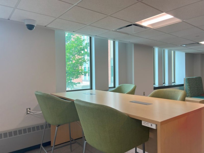 This is one of the newest study spaces on campus, and I love it! Every time I go, I try to find a new spot to sit. There are so many different chairs, tables and couches with fun shapes and colors that make studying feel a little less boring. When I study there, I always try to grab a seat near the corners — those spots have the best windows and natural light! Check it out in the TikTok we made about this place.