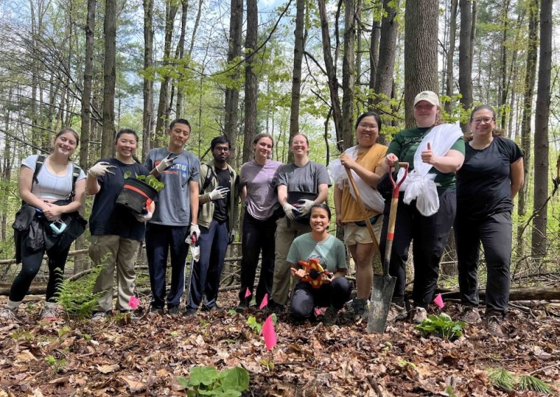 Forests are essential for clean air and wildlife, and Binghamton scientists are helping them thrive. A team led by Associate Professor of Biological Sciences Kirsten Prior is restoring native wildflowers in the campus Nature Preserve and adding them to local forests, including Buttermilk Falls State Park in Ithaca. These wildflowers – like bloodroot and wild ginger – play an important role in forest biodiversity and strengthening the ecosystem. Thanks to the efforts of these Binghamton biologists, our forests have a chance for a better, healthier future.