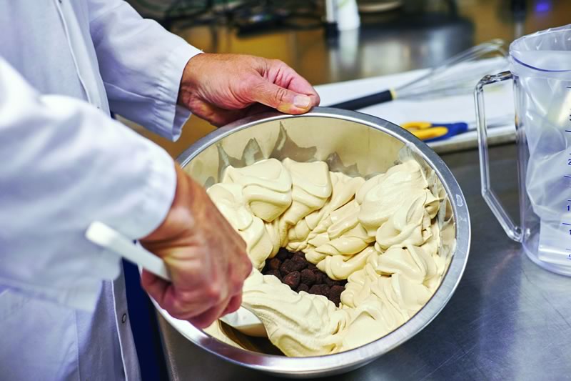 Once his colleagues are won over and the flavor is chosen for commercialization, the company builds a recipe for it and goes through an extensive plant-testing regimen before it reaches consumers. On average, it takes a new flavor about 18 months to go from concept to freezer case. Luckily for Shaffer, he isn’t the only one creating new flavors; he works alongside a team of talented people.