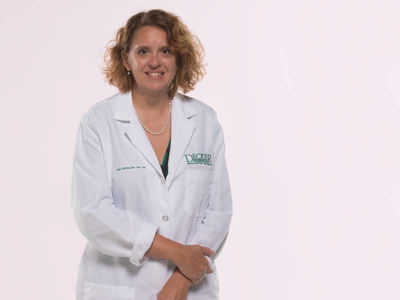 In summer 2017, Decker nursing faculty Nicole Rouhana, MS ’95, PhD ’11, and Ann Fronczek, MS ’99, collaborated with Eric Hoffman, professor and associate dean for research at the pharmacy school, on a clinical research study that looked at how humans react to weak doses of prednisone. The study is part of an effort begun eight years ago by Hoffman to find a steroid replacement drug that can stall the progression of muscle degenerative diseases, particularly Duchenne muscular dystrophy.