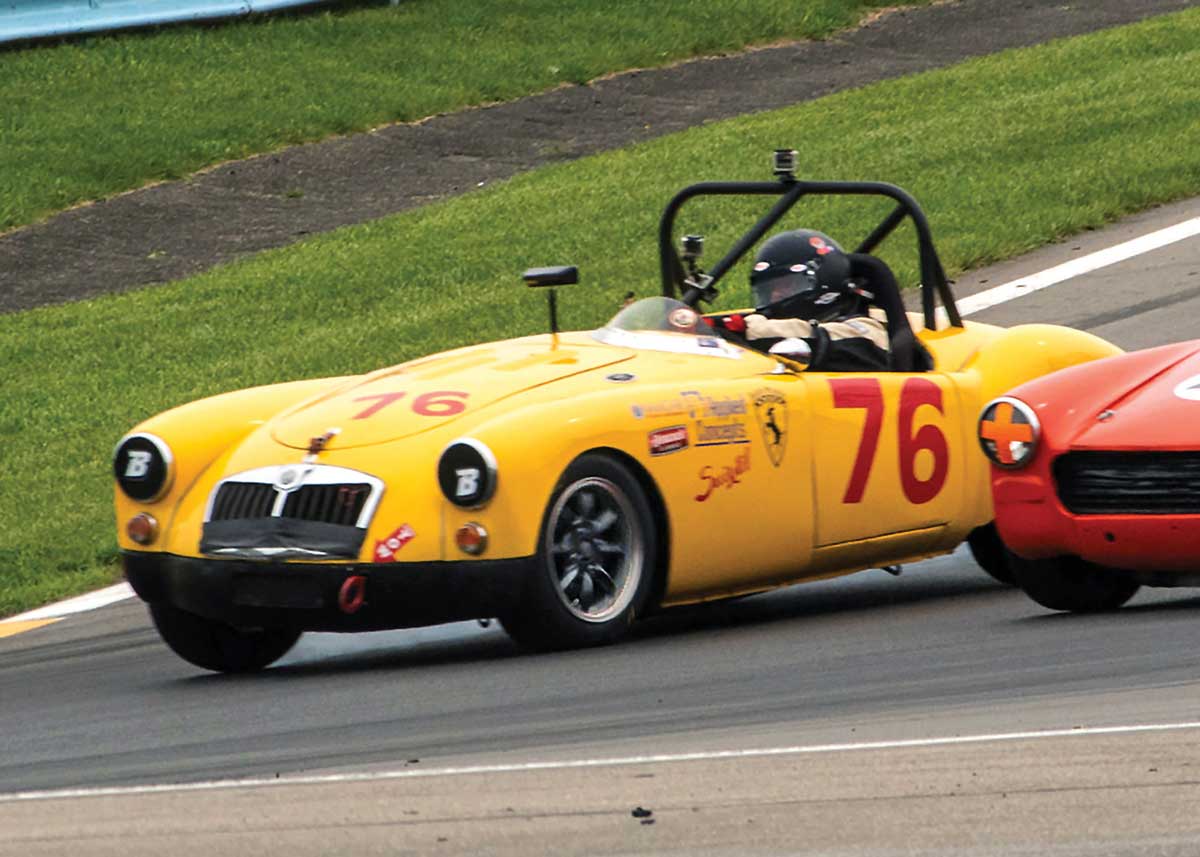 Nicholas travels the country with his wife, Rosemary, and his bright-yellow 1960 MGA, named Honeybee. Last fall, the Binghamton native had a homecoming of sorts as he and Honeybee hit the track at Watkins Glen International and won the Collier Cup, a race exclusive to MGs.