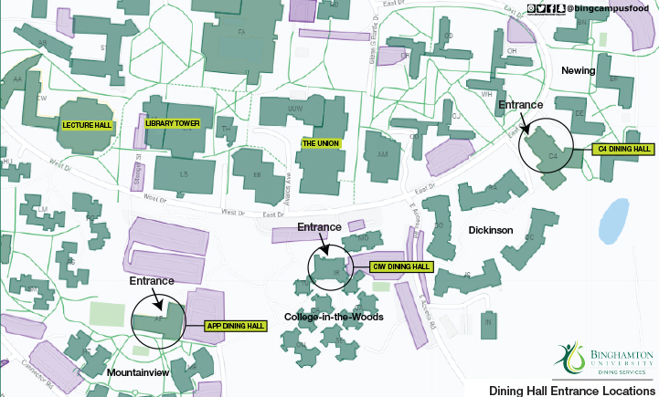Be sure to visit Binghamton University’s dining website and follow them on Instagram to keep up to date with any changes.