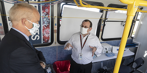 Placing the Broome County COVID-19 mobile rapid testing site at Binghamton University’s School of Pharmacy and Pharmaceutical Sciences in Johnson City, N.Y., for the week is a winning proposition for everyone, according to University President Harvey Stenger.