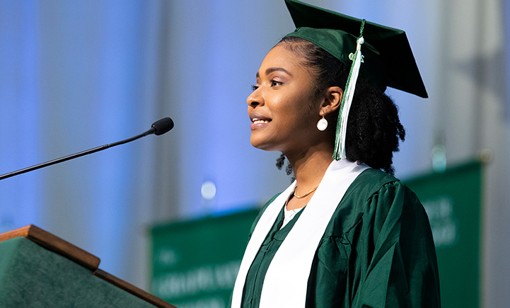 Making a difference was a major theme addressed in the CCPA ceremony. Student speakers Natassia Josephs and Devona Paul used their remarks to encourage graduates to continue finding ways to make a positive impact.