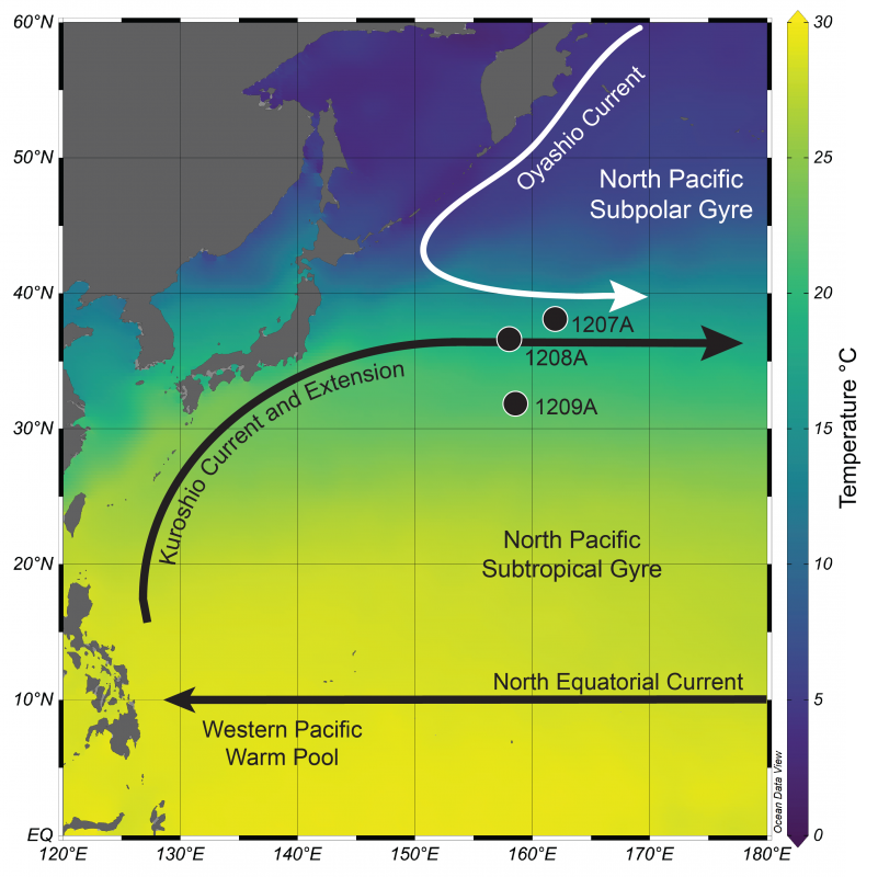 In a previous study, Lam calculated the diversity of fossil plankton at each site used in the later chemical study. She found that diversity was highest at the northernmost site of Shatsky Rise, from 12 million years ago until today. This finding indicates the ecotone created by the current has been around for a very long time — and likely the Kuroshio has, too.