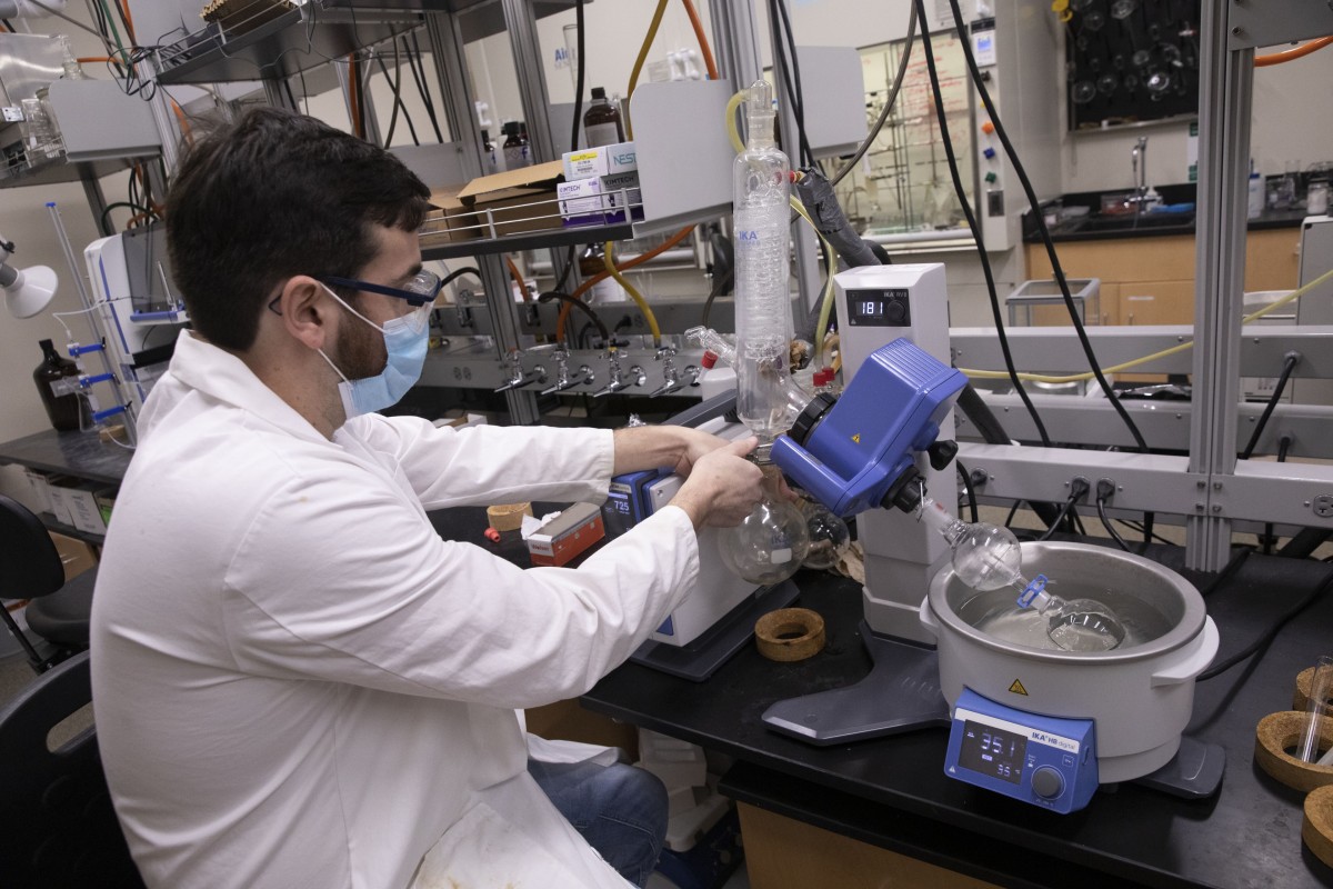 Lockdowns shuttered laboratories during the spring of 2020, as the coronavirus pandemic began to sweep across the country. Binghamton University Chemistry Professor Eriks Rozners and doctoral candidate Christopher Ryan, however, were hard at work on their latest idea.