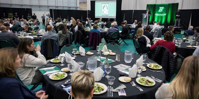 Binghamton University Athletics held its annual Hall of Fame Induction Ceremony on Saturday following the men’s basketball game and more than 150 guests celebrated the Induction Classes of 2020 and 2021.