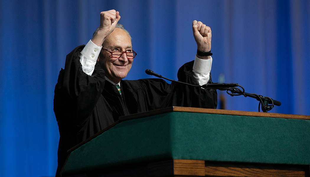 U.S. Senate Marjority Leader Charles Schumer speaks at Harpur 3, Watson ceremonies