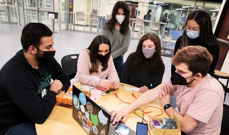 Advisor Meghana Jain (lecturer); students Faith Curtis (electrical engineering), Dillon Kane (computer engineering), Eric Fillingham, Brion Byfield (BME)