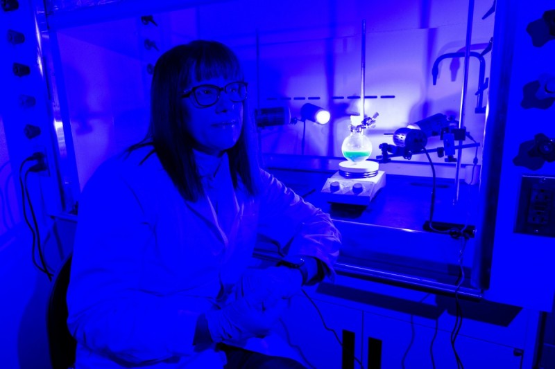 Research in the Hirschi lab looks specifically at two types of catalysis: photoredox catalysis, in which chemical changes are spurred by the use of blue light, and biocatalysis, which is prompted by engineered enzymes. Blue light, as it turns out, emits just the right amount of energy to activate chemical bonds.
