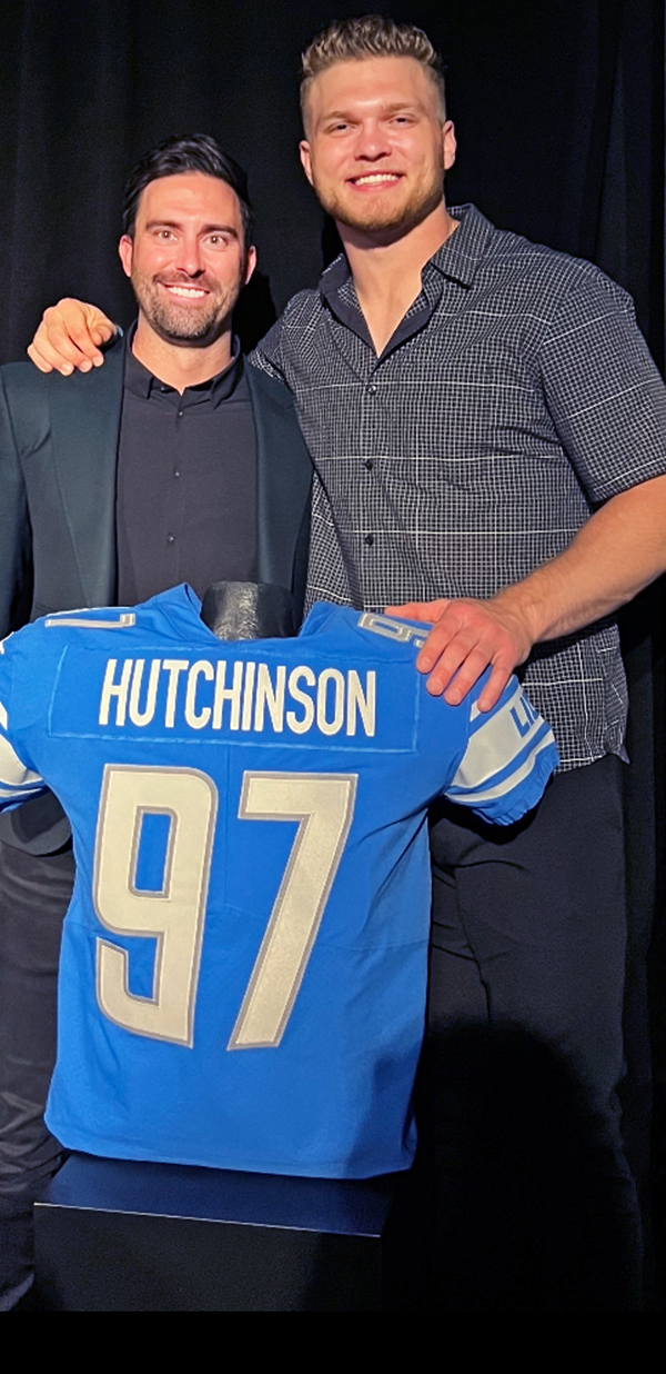Day 1. Showtime. NFL Commissioner Roger Goodell steps to the podium. Hutchinson goes to the Detroit Lions second overall. The draft’s green room erupts. Hugs from the former University of Michigan star’s parents. (Their two daughters call Henderson Aidan’s big brother.) Four spots later, Ekwonu is drafted by his hometown Carolina Panthers. Ekwonu’s mom, Amaka, locks Henderson in a massive embrace. “God is good! God is God!” she proclaims.
