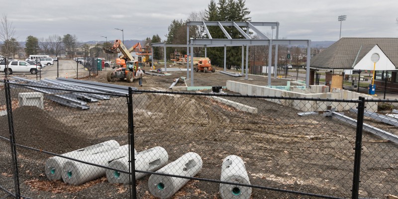 Work on the Charlene and Roger Kramer Welcome Center has progressed in recent months and the steel frame of the new facility can be seen when arriving via the main campus entrance. The contractor has completed a variety of work to bring utilities to the site. In late December, roofing was removed over the lanes servicing the Information Booth so additional steel work can take place. The project will provide a place for visitors to stop, gather information and freshen up. It features a multi-purpose lobby, a place to get refreshments and restrooms. The Information Booth will also be renovated as part of the work. The project is expected to be complete in early 2024.