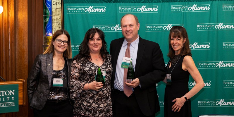 Two of Binghamton University’s alumni, Judy Garczynski Fleishman ‘90 and Steve Fleishman ‘91, were awarded the Glenn G. Bartle Distinguished Alumni Award, the Alumni Association’s highest honor, at a May 4 Alumni Special Recognition Awards ceremony at the Penn Club in New York City. The Fleishmans were recognized for their professional accomplishments and their unwavering dedication to giving back to their alma mater. Their efforts to support the University have created a lasting legacy that will continue to inspire future generations of students.