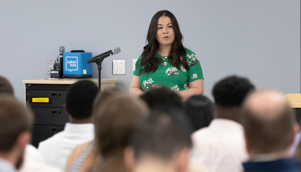 The future physical therapists also heard from guest speaker Tiffany Larson, a physical therapist with UHS Physical Therapy in Johnson City who also served as an acute-care instructor for some of the DPT students. Larson shared her clinical experiences as a physical therapy student and encouraged the Binghamton students to make the most of their training by remaining open-minded, curious and flexible throughout their clinical training. She urged them to “soak in the experience and learn as much as possible.”