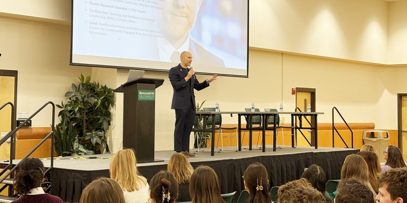 “We need nurses involved in AI technology right now,” said Maxim Topaz during his keynote address at the 2026 Kresge Center Lecture, Using Artificial Intelligence to Advance Nursing and Health: Tools, Pitfalls and Practical Workflows. The event, which drew more than 450 attendees, was held Feb. 6 at Binghamton University.