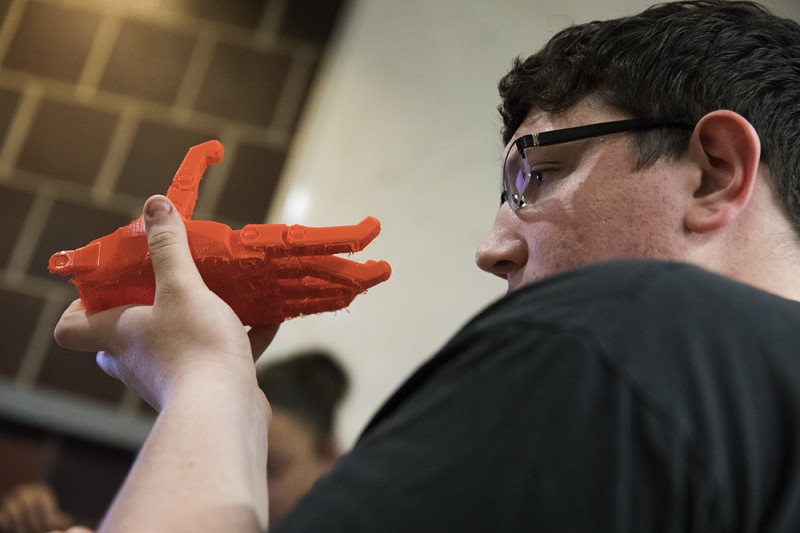 Engineering students develop 3-D-printed prosthetic hand for campus employee