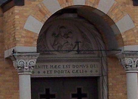 Latin inscription over the front entrance