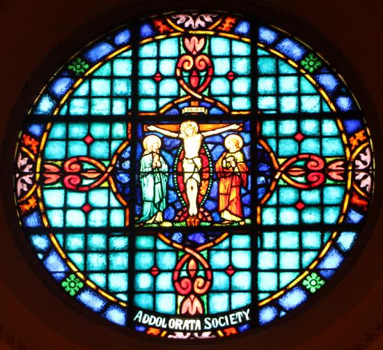 Located above Sts. Lucy and Ann is the South Rose Window depicting "The Crucifixion"