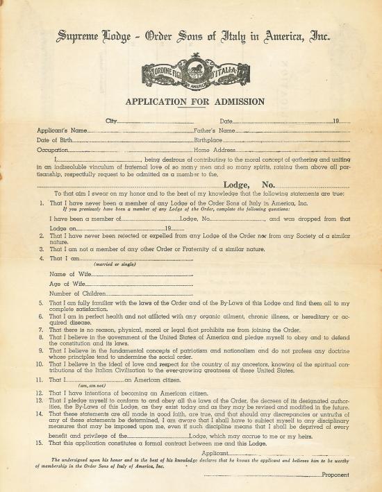Originally called "L'Ordine Figli d'Italia," the Order Sons of Italy in America was established in the Little Italy neighborhood of New York City on June 22, 1905, by Vincenzo Sellaro, M.D., and five other Italian immigrants who came to the United States during the great Italian migration (1880-1923). Their aim was to create a support system for all Italian immigrants that would assist them with becoming U.S. citizens, provide health/death benefits and educational opportunities and offer assistance with assimilation in America.
