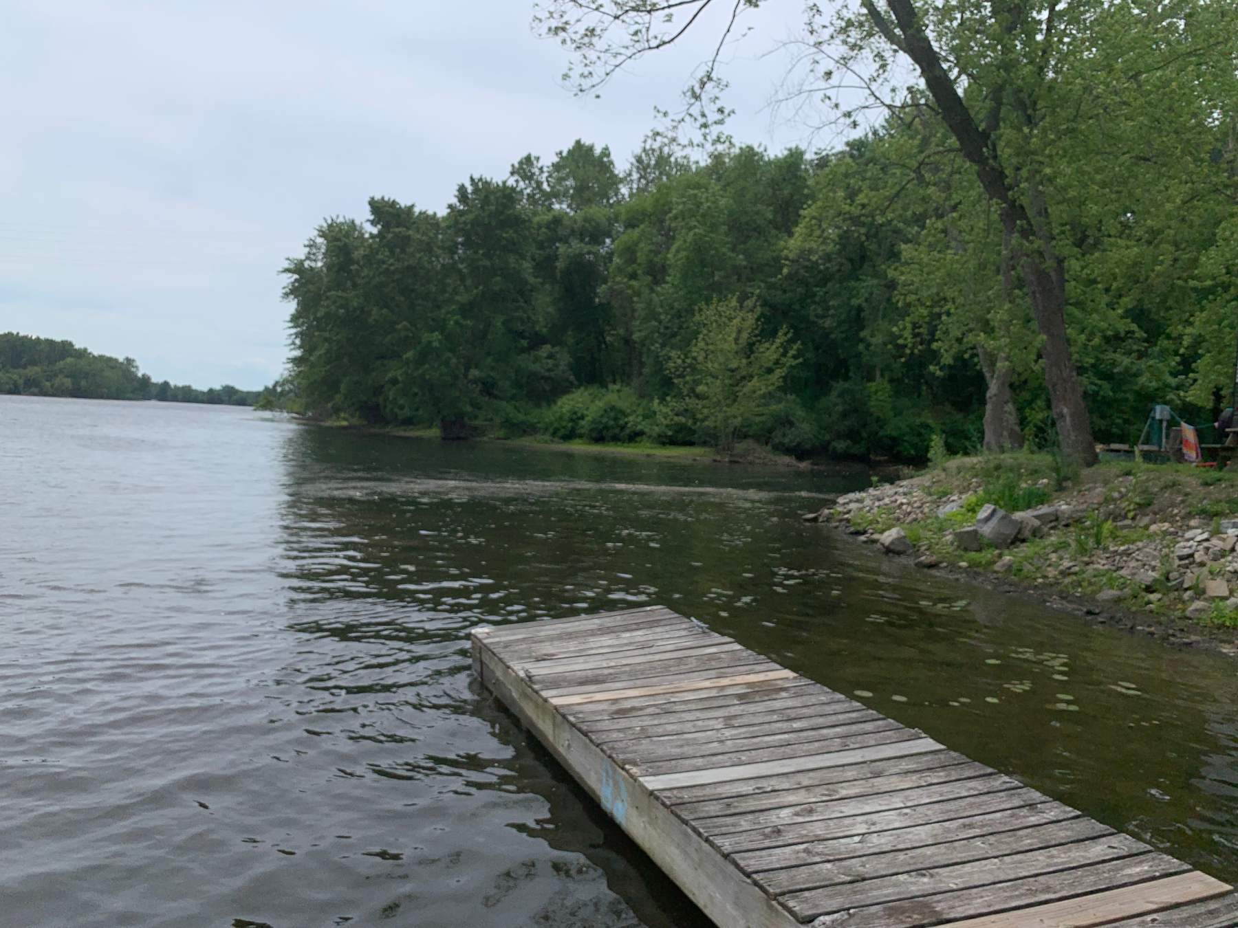 View of the mouth of Fish Creek looking south along the Hudson River from the campground dock.