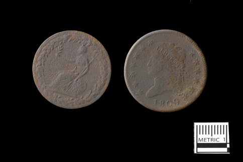 Right: Front of an 1809 U.S. Classic Head Large Cent.