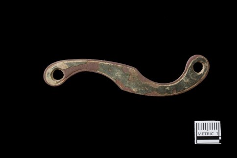 Copper clasps for a leather neck stock.