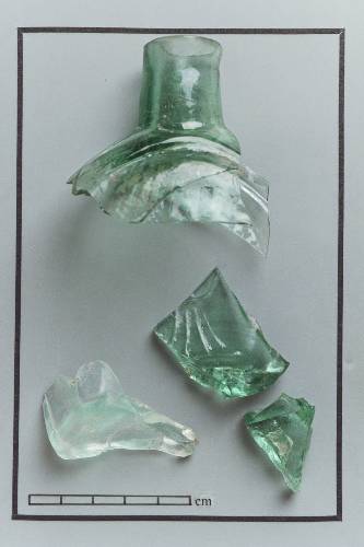Among ceramic vessels used for food service, ceramics referred to as whitewares (produced from 1830 onwards) and pearlwares (produced ca. 1780-1830) were the most frequently found. Small numbers of creamware (1780-1820), ironstone (1850 onwards), glossy manganese-glazed redware (1750-1900), as well as glass, were also present. Archaeologists also recovered very small amounts of tin-enamel glazed earthenware (1700-1750), the earliest ceramic material found at the L. Northrup site. Vessels forms recovered from the site included ceramic plates, a ceramic soup plate, teacups, saucers, a ceramic teapot, and glass tumblers. These types, materials and forms within the food-related group seem consistent with a diverse midden in the vicinity of an early- to mid-19th century rural farmstead.