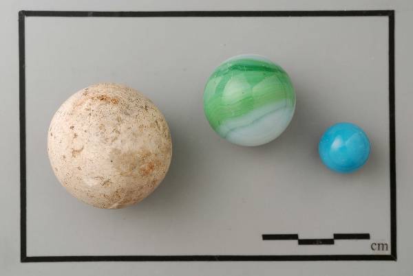 Later 19th century and 20th century artifacts (a plastic chess piece, glass marbles, clip-on earring and 1964 nickel) were found at the western end of the excavation area, nearer to the current building entrance and the driveway/parking area.