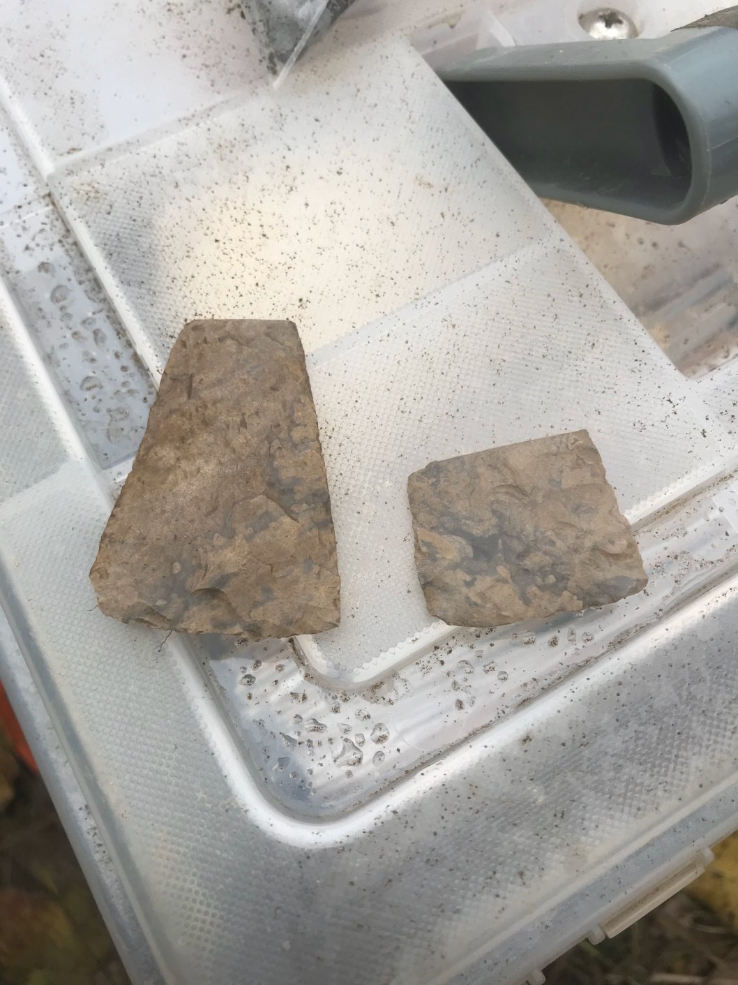 Fragments of Meadowood cache blades dating to the Early Woodland Period. The small cluster of Meadowood material culture in this part of the site suggests a brief habitation.