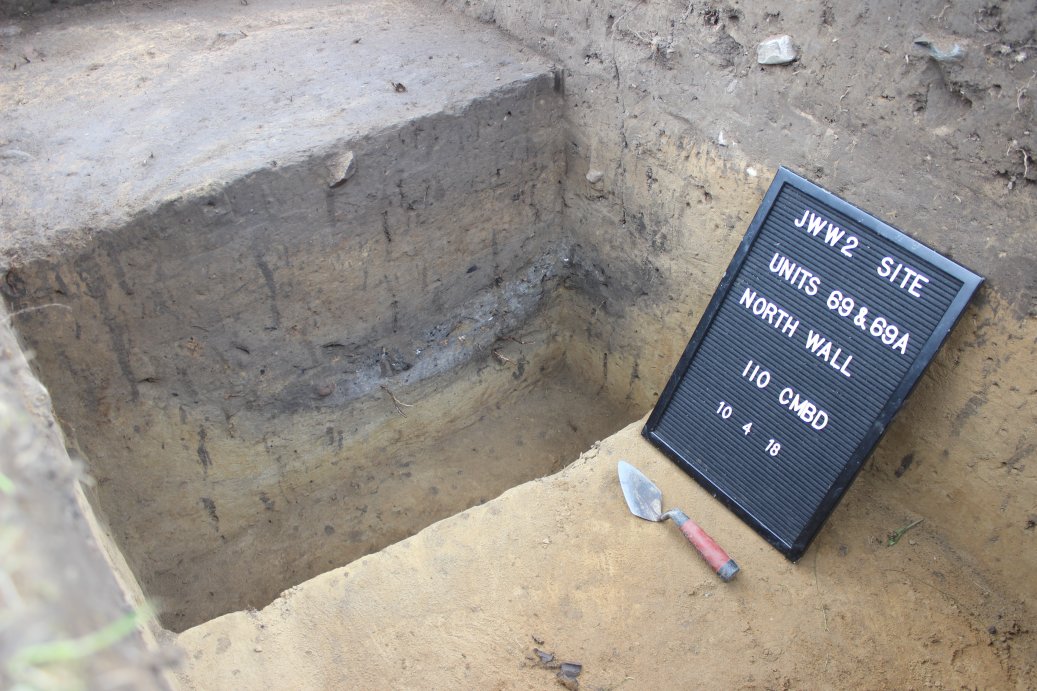 Post molds were the most commonly identified feature at the site, though no pattern was observed to indicate a house, palisade, or other large structure. Twenty smudge pits were identified during site investigations, most of which were clustered in a portion of the site that yielded relatively little cultural material. Radiocarbon dates and diagnostic material culture demonstrated that the smudge pits dated to throughout the site’s use, from the Late Archaic through the Historic Periods. Much of the site’s cultural material was found in 15 large storage pits, of which 14 dated to the early Late Woodland Period. The remaining pit dated to the Late Archaic Period. The storage pits were very rich in cultural material, including butchered animal bones, stone material culture, pottery sherds, and botanical remains. Four of these pits have a date range of AD 1048-1217.